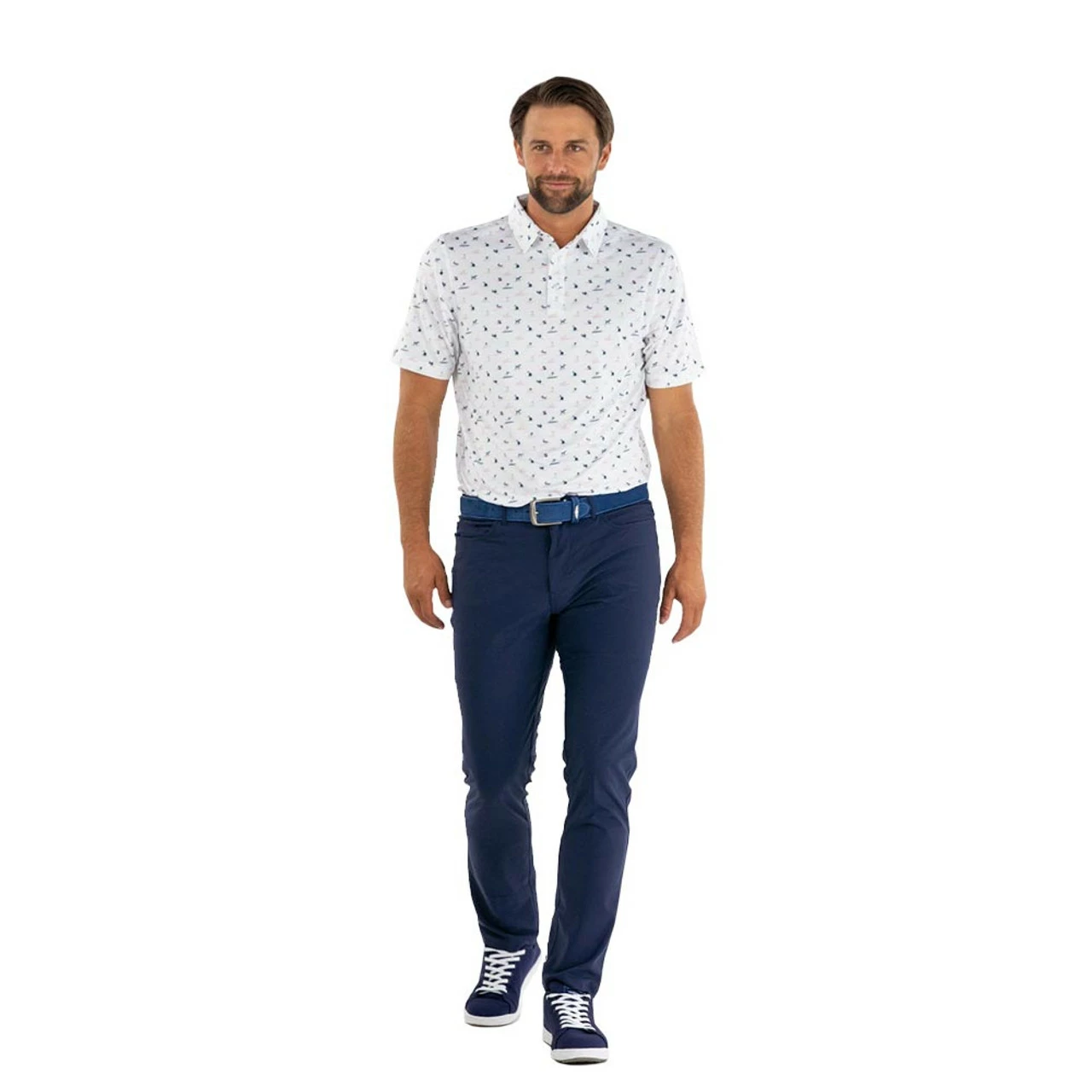 Featuring a paddle-boarding and surfing dog graphic all over, the Straight Down Sup Dog Polo will have you missing our furry friends. The dog themed polo has stretch characteristics that provide a relaxed fit that won’t interrupt your swing in any way. With a 3-button placket and a self collar, this polo is perfect for any occasion.